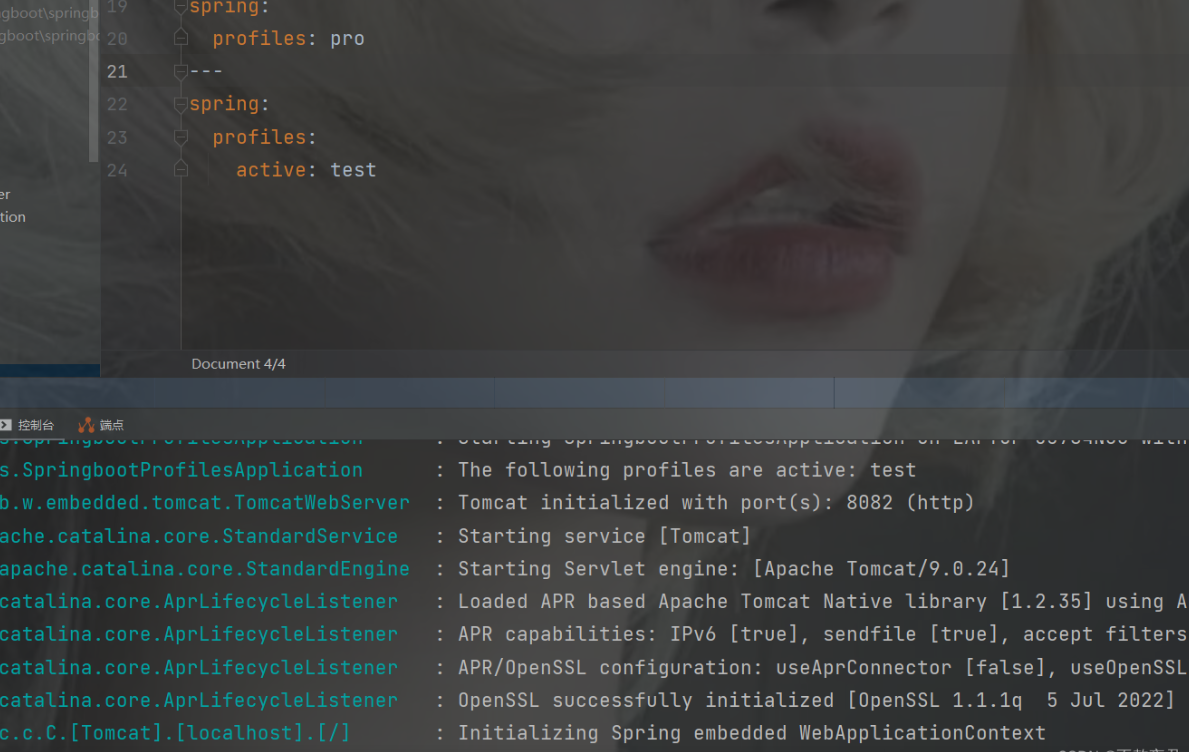 --- server: port: 8081 spring: profiles: dev--- server: port: 8082 spring: profiles: test---server: port: 8083 spring: profiles: pro---#激活配置spring: profiles: active: dev