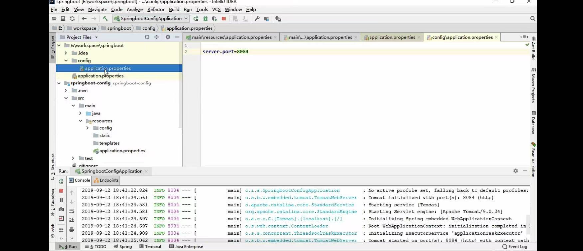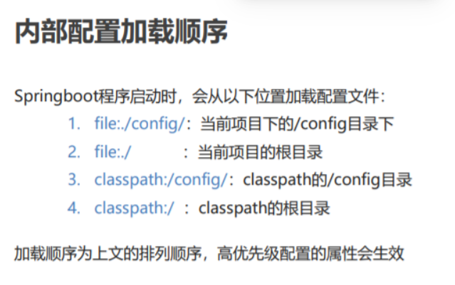 这个file就是你的项目,classpath可以理解为未打包前的项目里的Java和resource部分合在一起。比如说现在我们创建如下模块springboot-config,然后在添加如下配置。如下图,可以看到file下有一个properties配置文件,那么他的优先级是第二,file下面还有一个config文件夹,文件夹里的properties配置文件优先级是第一,然后resource下面的config文件夹里的配置文件优先级就是第三,resource下的配置文件优先级就是第四。