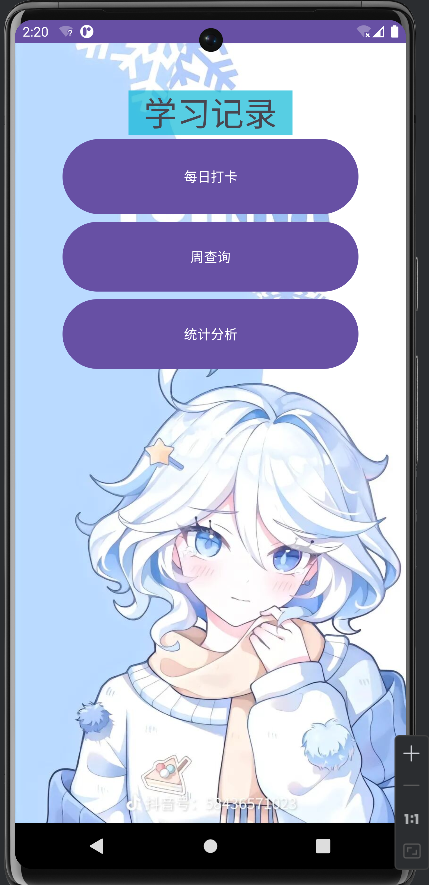 昨天完成的学习记录APP的登录注册功能,今天继续完成主界面和打卡功能,加入了时间函数,用户不可修改打卡时间,不可造假,保证了打卡的准确性