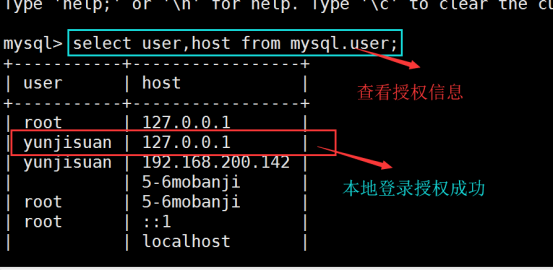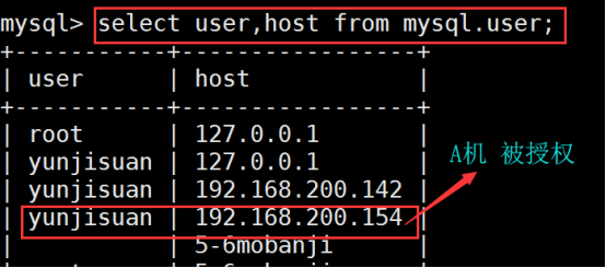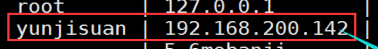 上面表示:本地yunjisuan用户,只能登录192.169.200.142这个本地ip