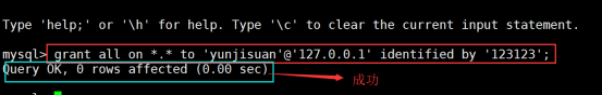 grant all on *.* to 'yunjisuan'@'127.0.0.1' identified by '123123';