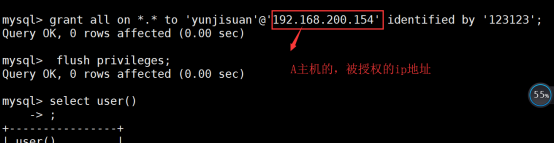 grant all on *.* to 'yunjisuan'@'192.168.200.154' identified by '123123';