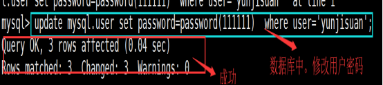 update mysql.user set password=password(111111) where user='yunjisuan';