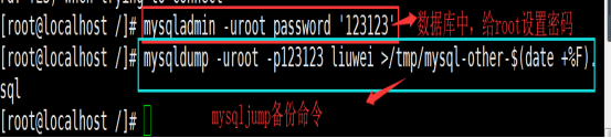mysqldump -uroot -p123123 liuwei >/tmp/mysql-other-$(date +%F).sql