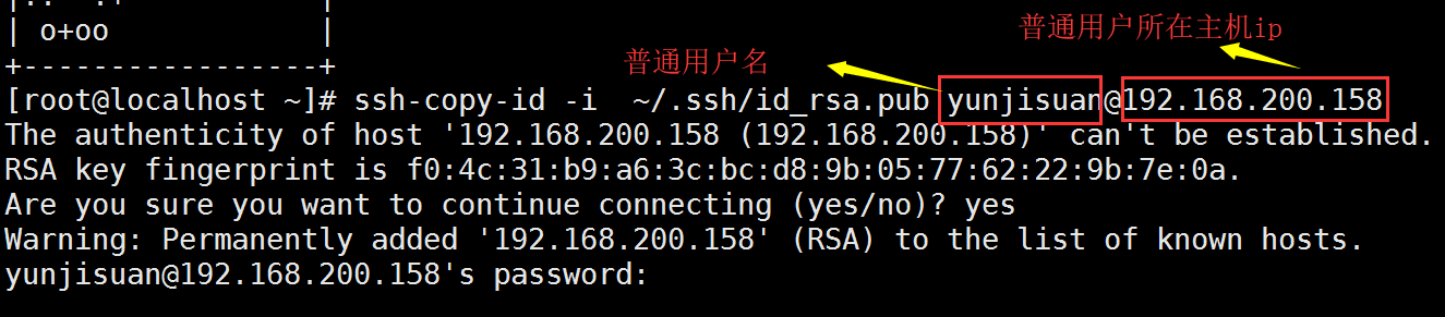 [root@localhost ~]# ssh-copy-id -i ~/.ssh/id_rsa.pub yunjisuan@192.168.200.158