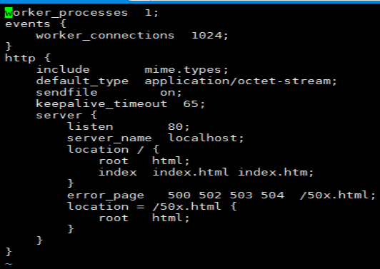 egrep -v "#|^$" nginx.conf.default > nginx.conf