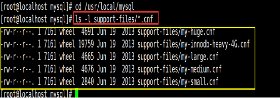 - [root@localhost mysql]# ls -l support-files/*.cnf