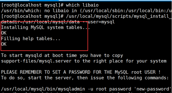 - [root@localhost ~]# /usr/local/mysql/scripts/mysql_install_db --basedir=/usr/local/mysql --datadir=/usr/local/mysql/data --user=mysql