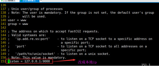 listen = 127.0.0.1:9000 --->如何要分离式部署,需要把本地IP改成远程IP