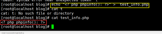 [root@localhost html]# echo "<? php phpinfo(): ?>" > test_info.php