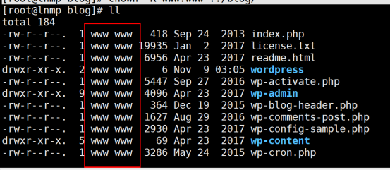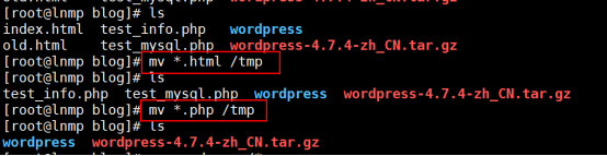 [root@lnmp blog]# /bin/mv wordpress-4.7.4-zh_CN.tar.gz /root/ #移走源程序