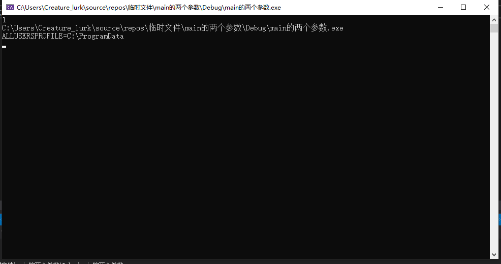 可以看到argc的值为1,argv是程序生成的exe文件地址