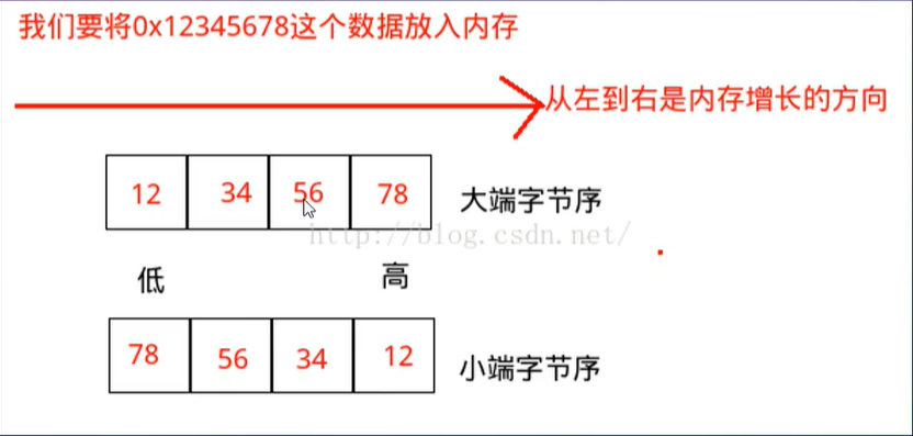 内存中存储这4个字节有两种方法:一种是将低序字节存储在起始地址,这 称为小端(little-endian) 字节序;另一种方法是将高序字节存储在起始地址,这称为 大端(big-endian) 字节序。