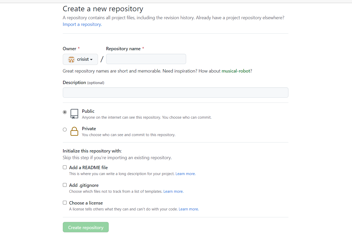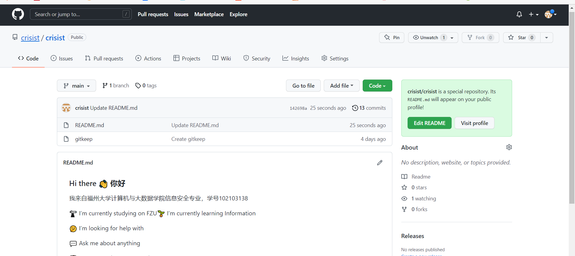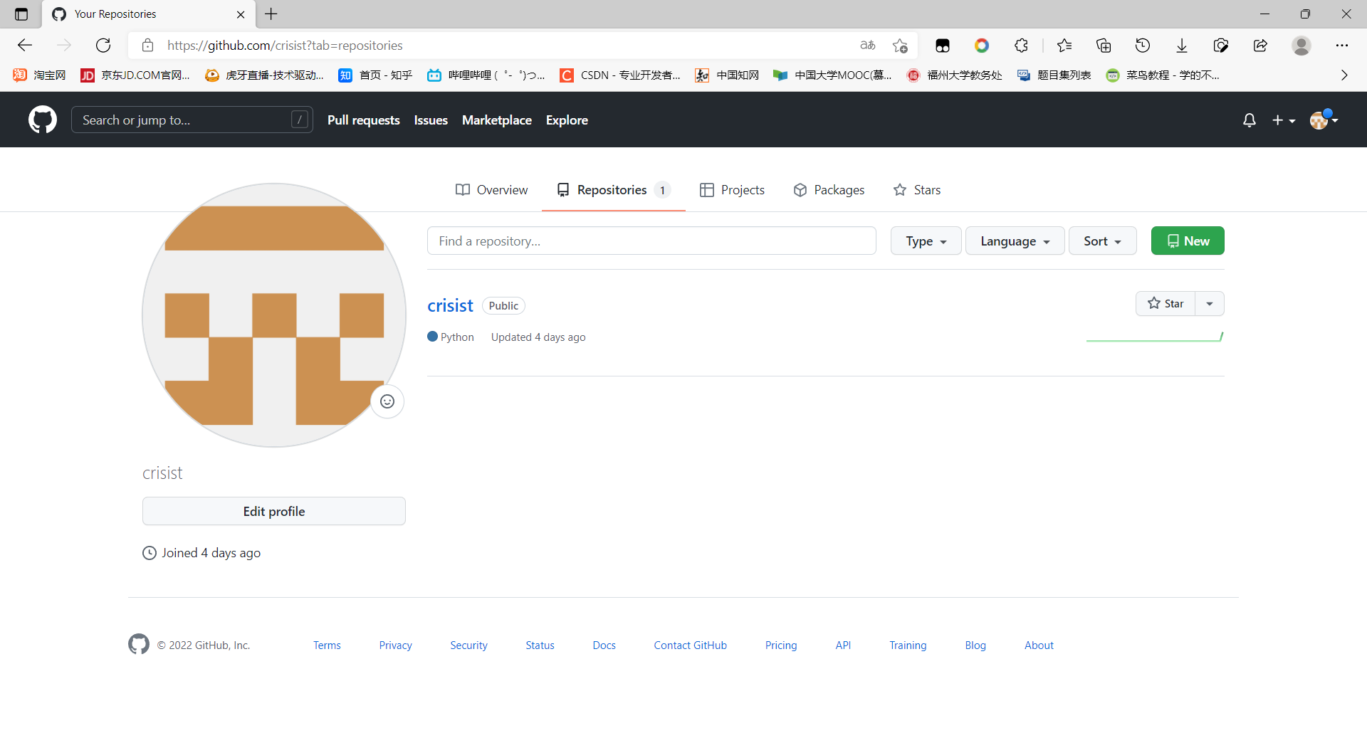 4.创建github的仓库,仓库名和账号名一样,才能设置readme文件