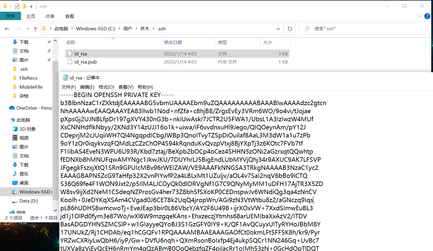 6.在根目录进行git 输入ssh-keygen -t rsa -C 来获取密匙并在对应文件夹处获得密钥