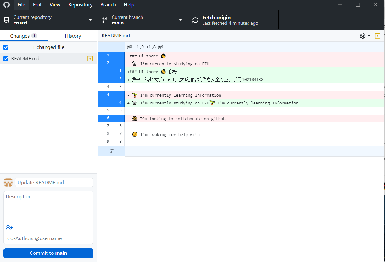 8.在本地进行对readme文件的修改(用visiostudiocode修改)后进行push