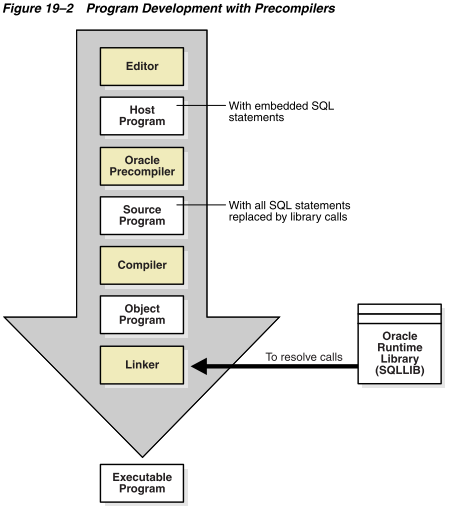 ■ 节省时间,因为预编译器(而不是您)将每个嵌入式SQL语句翻译成对Oracle数据库运行时库的调用