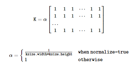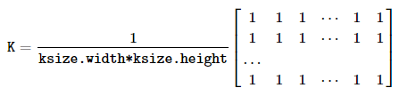 取卷积核(Kernel)区域下所有像素的平均值并替换中心元素,如下公式: