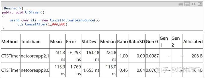 还有些别的蛎子,这个PR“教会了”运行时要“尊重Docker的 -cpu限制”,这个PR和另一个PR优化了通过各种同步站点(原文synchronization site)带来竞争时的自旋行为,这个PR则优化了SemaphoreSlim,当一个实例消费者把同步Wait和异步WaitAsync混合起来时。Quogu的这个PR专门为CancellationTokenSource创建了一个0延时,以避免Timer相关的损耗。