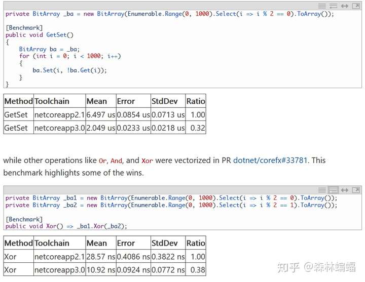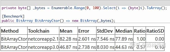 另一个在DNC3中看到显著提升的集合是BitArray。很多操作包括构造器,都在这个PR里优化了。