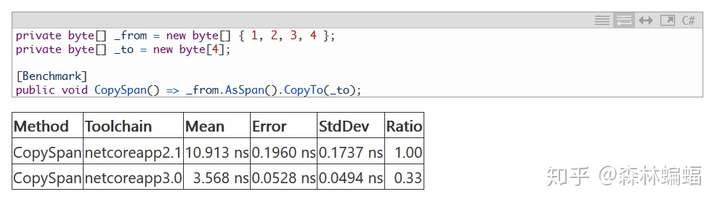 回到我们的例子中,复制Span的性能也有所提升,感谢banaadams提供的这个PR和那个PR,尤其是针对小的Span…