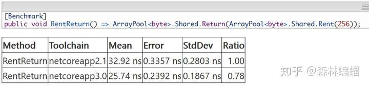 这很好的说明了去虚拟化做出的改进,但是还有其他的改动,例如20447,20292,20640号PR,和benaadams的PR,合在一起促进了ArrayPool<T>.Shared之类的API。