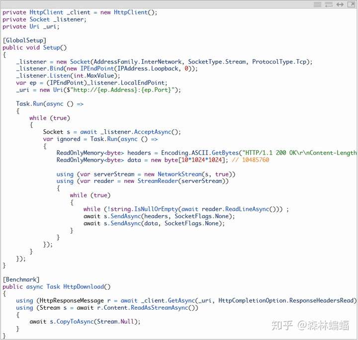 让我们先来看看HttpClient。这个PR所做的优化围绕缓冲处理方式进行,特别是在服务器提供内容长度(ContentLength)时,作为复制响应数据的一部分的大缓冲请求场合。在一次快速连接和一个大的响应数据体情况下(例子中是10MB),因为减少了系统对传输数据的调用,吞吐量有很大的差别。