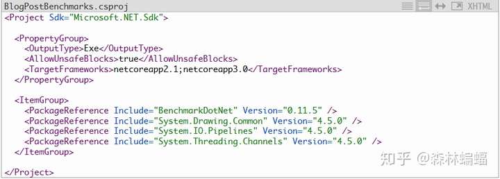 - 将BlogPostBenchmarks.csproj的内容换成下面代码: