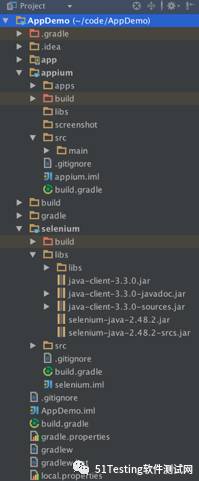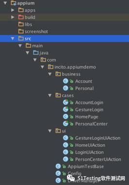 6、appium module中,新建java class,开始开发自动化case。至此AppDemo工程目录结构如下所示: