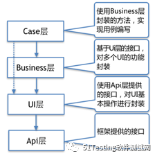 testAccountLogin Case中,执行了两步操作:进入登录页面;执行登录操作。这两步操作都封装在Account类里面。由此引入自动化case的分层设计框架,如下图: