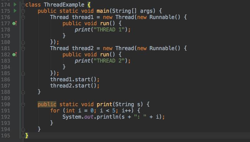 运行上述代码将输出打印一个随机的顺序。可能是连续的,也可能不连续,取决于CPU。然而,如果我们使用synchronized修饰符