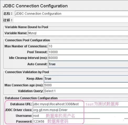来配置一下JDBC Connection Configuration页面。