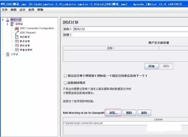 点击“浏览...”按钮,将你的JDBC驱动添加进来。