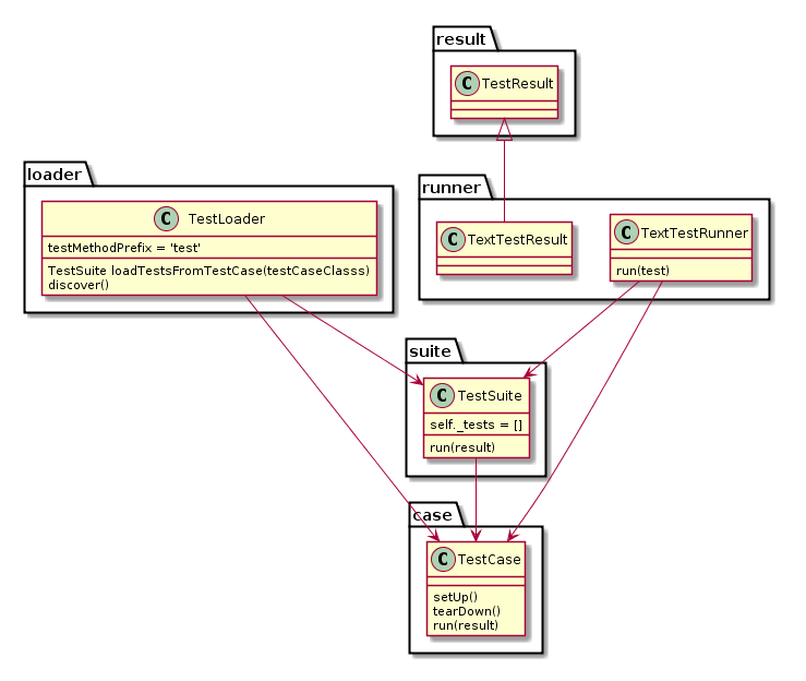 下面我们分别来解释这四个概念的意思,先来看一张unittest的静态类图(下面的类图以及解释均来源于网络):