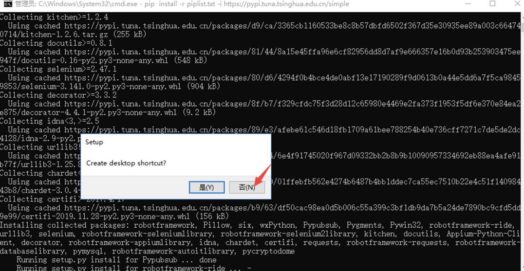 ride 安装  1. 安装 ride 编辑器 pip install robotframework-ride -i https://pypi.tuna.tsinghua.edu.cn/simple(提示Successfully installed PyPubSub-4.0.3 Pygments-2.11.2 Pywin32-303 numpy-1.21.6 pillow-9.1.0 1. 安装 ride 编辑器 pip install robotframework-ride -i https://pypi.tuna.tsinghua.edu.cn/simple(提示Successfully installed PyPubSub-4.0.3 Pygments-2.11.2 Pywin32-303 numpy-1.21.6 pillow-9.1.0robotframework-ride-1.7.4.2 six-1.16.0 wxPython-4.0.7.post2,会⾃动安装上述依赖库,中途会弹窗是否创建快捷⽅式,建议选否,使⽤过程中存在⼀定问题)