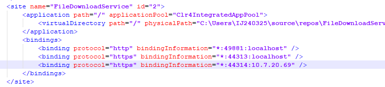 <binding protocol="https" bindingInformation="*:44314:10.7.20.69" />