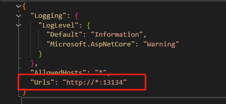 .net core版本,在文件下,有配置文件appsettings.json。在VS中打开appsettings.json,添加下图所示Urls。