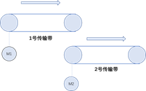 某传输线由两个传送带组成,按物流要求,当按下启动按钮S1时,皮带电动机M2首先启动,延时5s后,皮带电动机M1自启动;如果按停止按钮S2,则M1立即停止