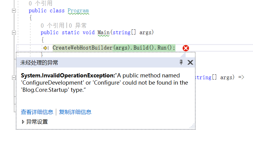 1、引入Ioc注入后,运行报错。Emmm,是startup里的代码搞错了。检查处理后,重新运行,正常。