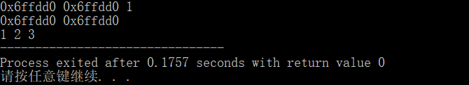 1 #include <iostream> 2 using namespace std; 3 int main() 4 { 6 int ia[2][3]={{1,2,3},{4,5,6}}; 7 cout<<ia<<" "<<*ia<<" "<<**ia<<endl; 8 int (*p)[3]=&ia[0];//p是指向整个数组的,并不是首元素地址 9 cout<<p<<" "<<ia[0]<<endl; 10 for(int i=0;i<3;i++) 11 cout<<*(*p+i)<<" "; 12 return 0; 13 }