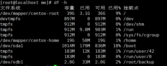 最后可以使用df -h来查看挂载状态和硬盘使用量信息