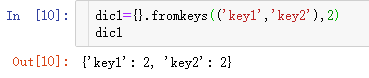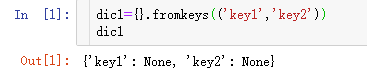 4、内建方法fromkeys()创建字典,字典中元素具有相同的值 (如果没有给出, 默认为None)