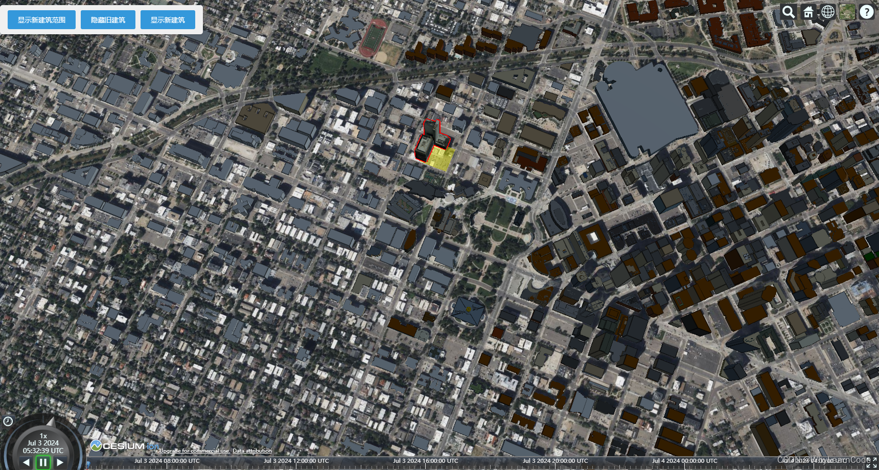 在这里,通过控制新建筑的显示,可视化新建筑对周边环境的影响 到这里就结束啦