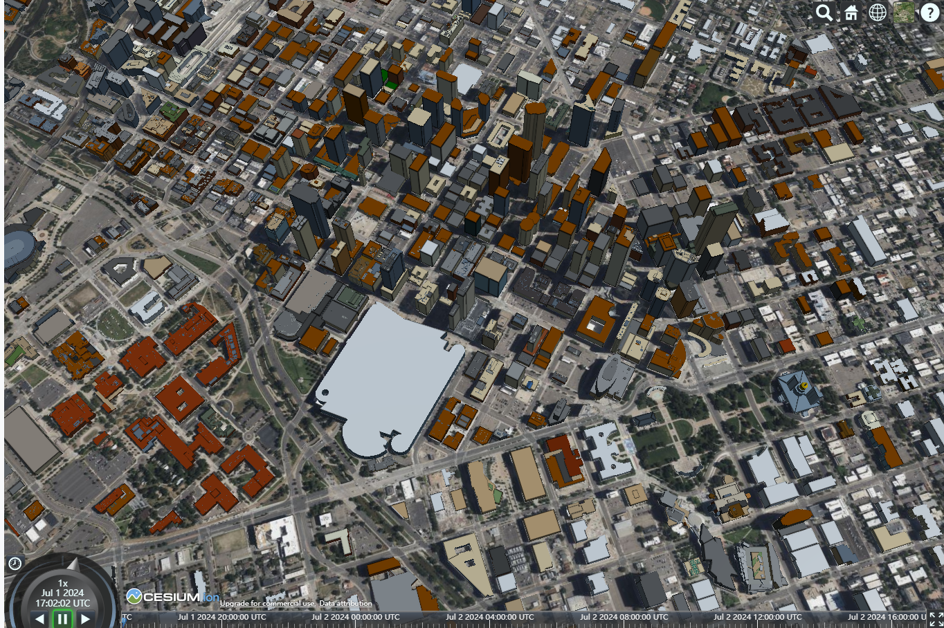 现在我们已经确定了新建筑的去向,我们可以看到目前有哪些建筑。我们将使用 3D Tiles 样式语言来隐藏它们。
