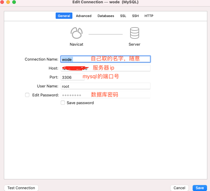 3.执行update user set host = '%' where user ='root'将Host设置为通配符%。 Host设置了“%”后便可以允许远程访问。