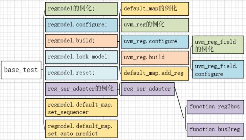 注3:寄存器模型的内容包括寄存器模型的构建(涉及到寄存器模型相关类)、寄存器模型的集成(与总线uvc桥接)与寄存器模型的使用(涉及到寄存器模型的常用方法以及预定义的sequence与寄存器的测试,还包括寄存器覆盖率);