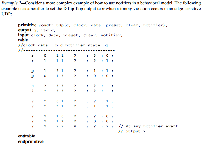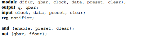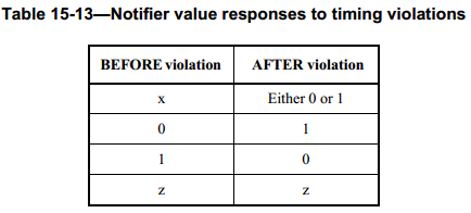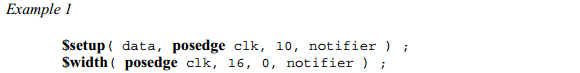 (3) notifier是一个reg类型变量,在调用时序检查tasks的module里面声明,并且会作为时序检查tasks的最后一个参数;当时序违例发生时,时序检查会更新notifier的值;