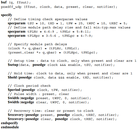 1.4.2 为了有助于上面的建模条件,数据与参考信号的delayed copies会在时序检查中产生,在仿真中的时序检查评估中应用;