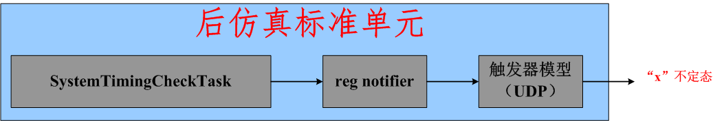 (4) 主流EDA工具都提供仿真命令参数"+no_notifier",通过这个命令参数可以使时序检查任务中检测到时序违例后,不影响其参数列表中notifier的值,从而避免了notifier变化引起UDP输出不定态的情况,但是log中依然会报时序违例信息;