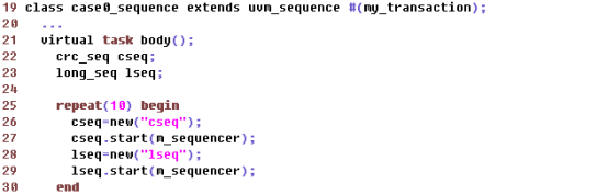 (1) 更高层的sequence组织底层sequence,进而将这些sequence按照顺序或者并行方式,挂载到同一sequencer上.